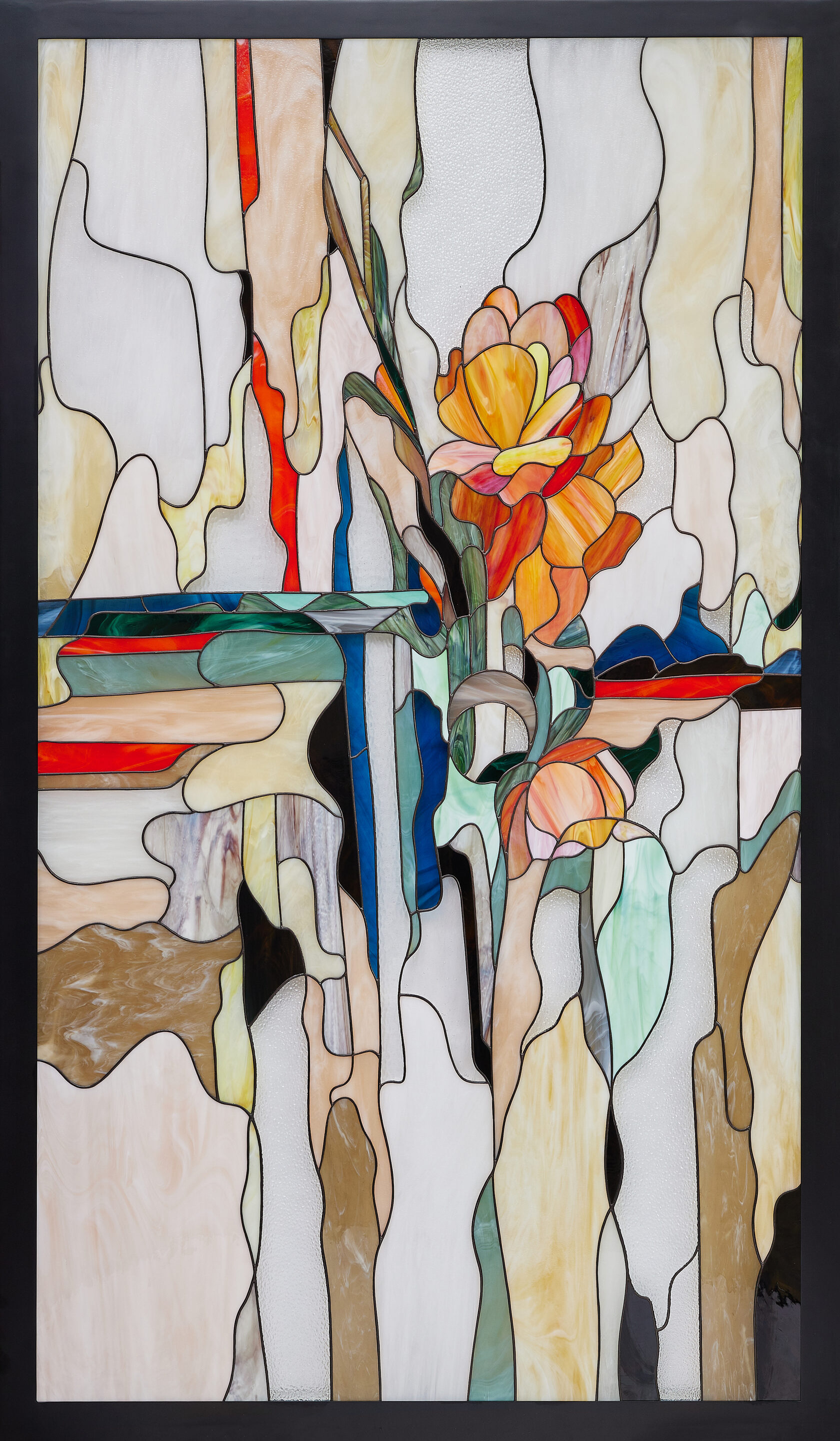 Современный интерьер, много воздуха, пространства, все гармонично и понятно, но нужна эмоция. И вот, солнечное, энергичное панно своими красками и бликами стекол вносит жизнь в пространство, оставляя интерьер более сдержанным и спокойным.