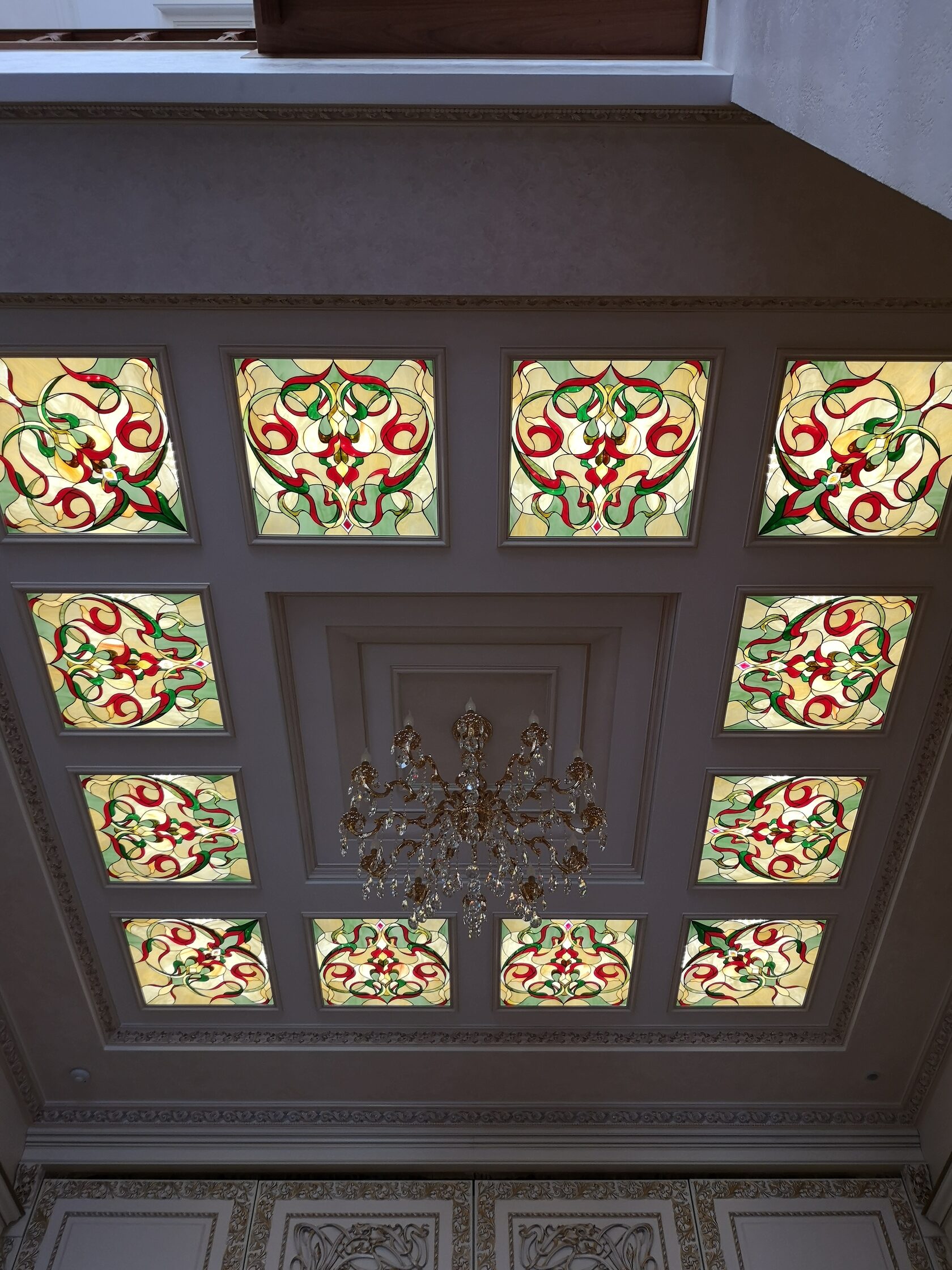 Материалы: Стекло Spectrum, каркас дуб, покрытие Эмаль, индивидуальные фацеты под заказ.